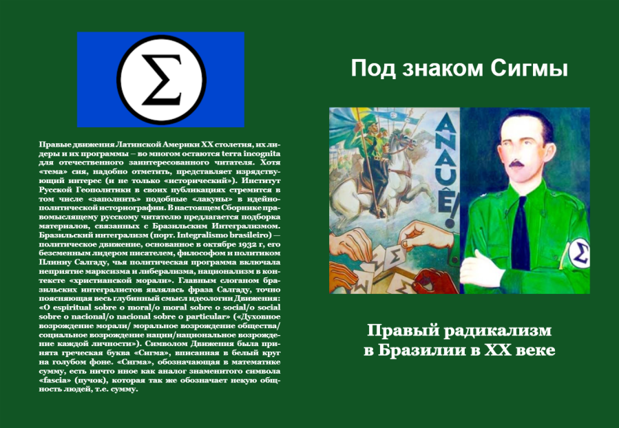 ГлавнаяПод знаком «сигмы». Правый радикализм в Бразилии в XX веке. Под знаком «сигмы». Правый радикализм в Бразилии в XX веке. Интегрализм-полнСкачать Поделиться ссылкой: Нажмите, чтобы поделиться в X (Открывается в новом окне) X Нажмите, чтобы открыть на Facebook (Открывается в новом окне) Facebook Нравится Загрузка...