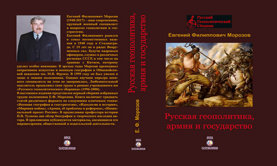 Первый сборник избранных трудов полковника Е.Ф. Морозова (1948-2017), крупнейшего представителя отечественной школы геостратегии в конце XX – начале XXI веков, автора «Большого Евразийского проекта», «Теории Новороссии», концептуальной программы воссозданного Союза Русского Народа и многих других публикаций. Книга включает тридцать статей различного формата. В приложении публикуются материалы, касающиеся его мировоззрения, общественной и издательской деятельности.